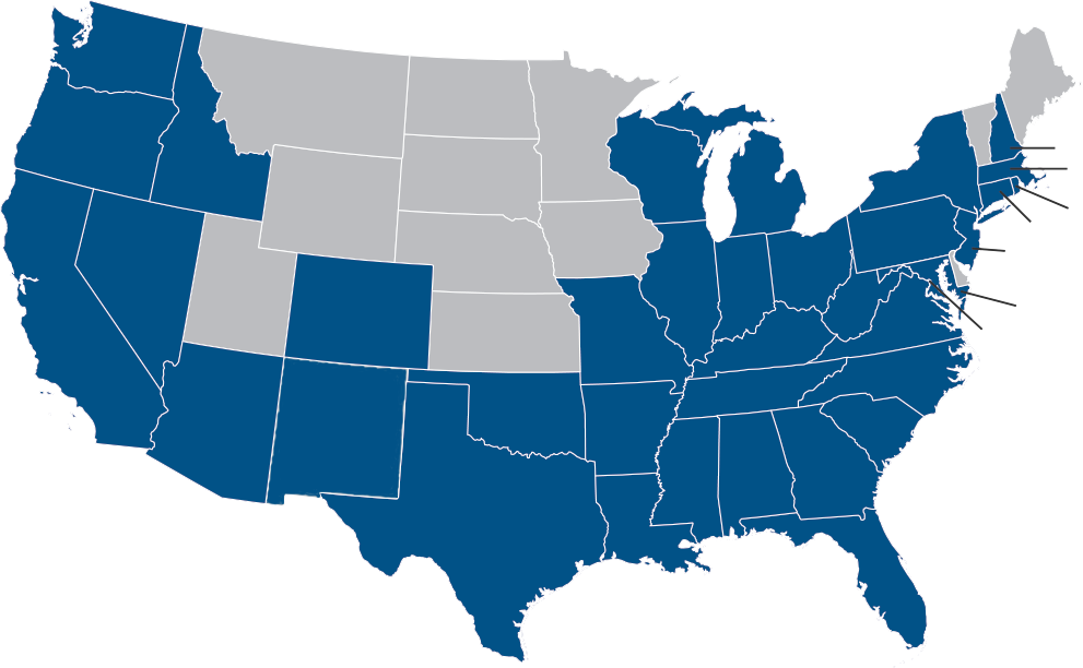 Hover over pin to view locations in each state.