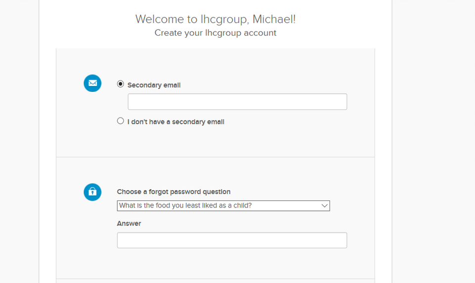 If Voice Call is the first factor that you setup, there is an additional screen. Answer the remaining questions (includes choose a forgot password question, and selecting a picture/security image), then click on the “Create My Account” button.