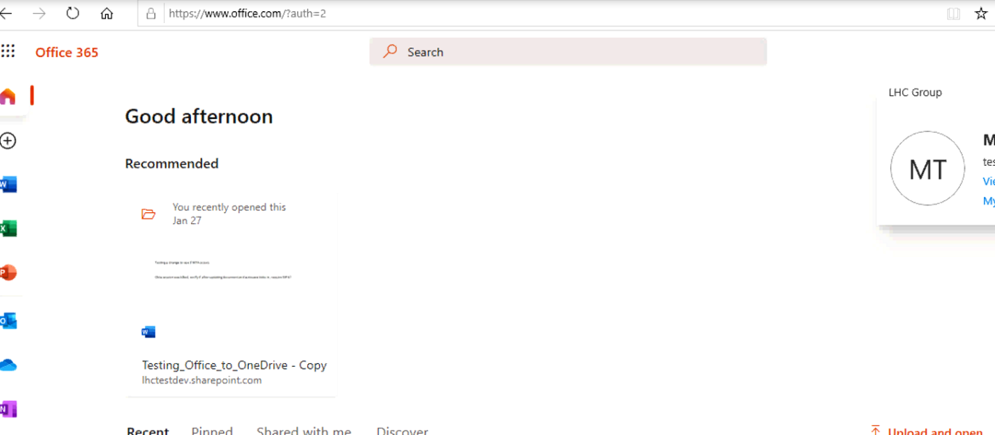 You will now be logged into Office.com at LHC.