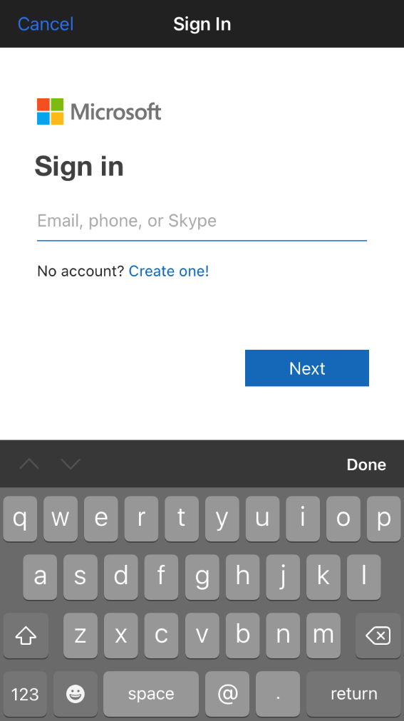 After downloading a Microsoft 365 application from either the Google Play store or Apple App store: