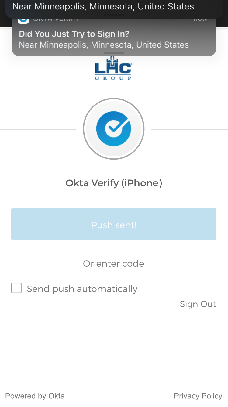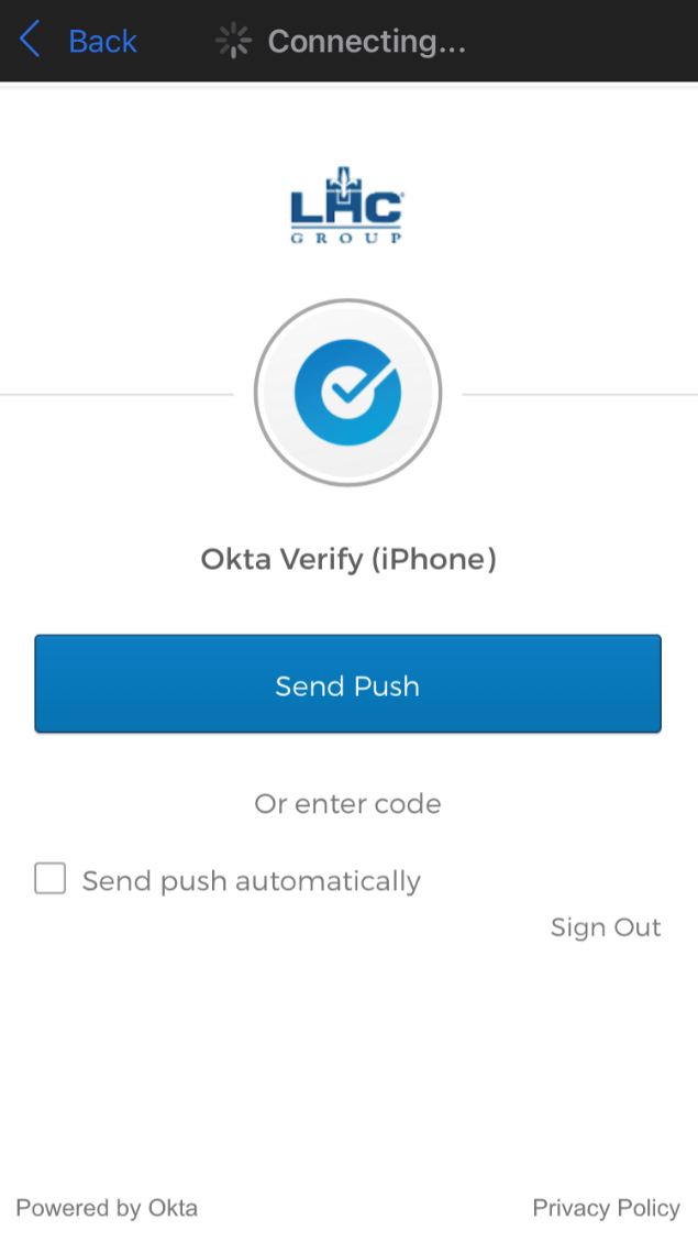 After you click Sign In, Click on Send Push to send the Okta MFA Challenge to your mobile device.