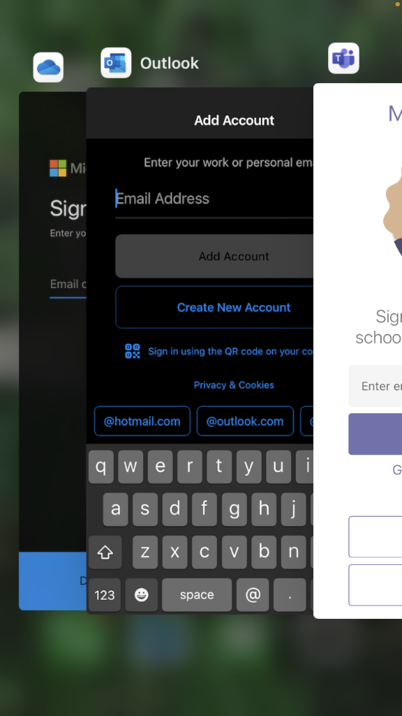 Outlook, Teams, OneDrive for Mobile