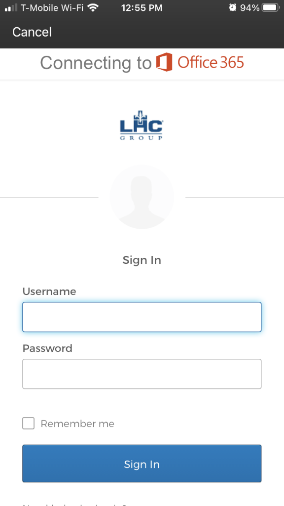 Go to login.microsoftonline.com and enter your LHC network ID @lahcg.com which is the same ID used to login to your LHC device, with @lahcg.com appended to it.