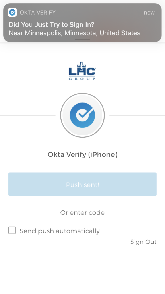 Click on ‘Send Push’ to send the Okta MFA Challenge to your mobile device.
